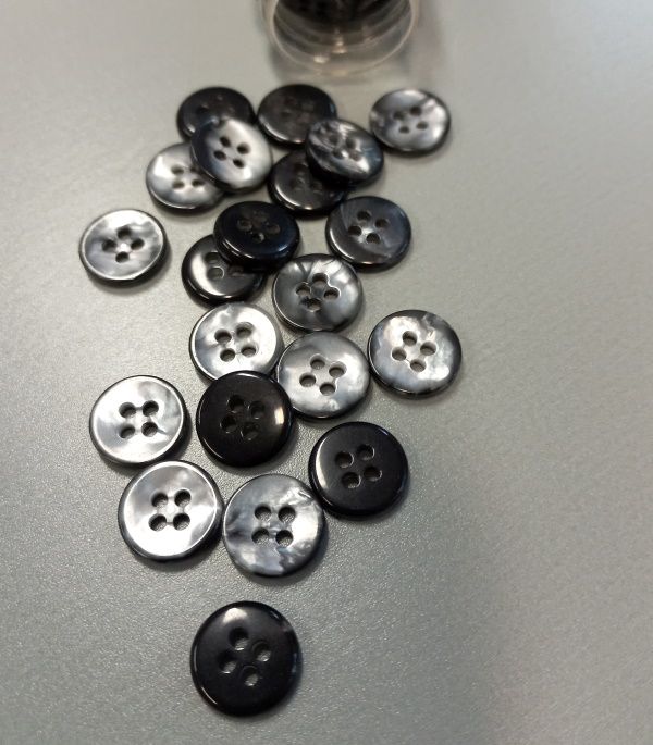 Műanyag gomb, négy lyukas.