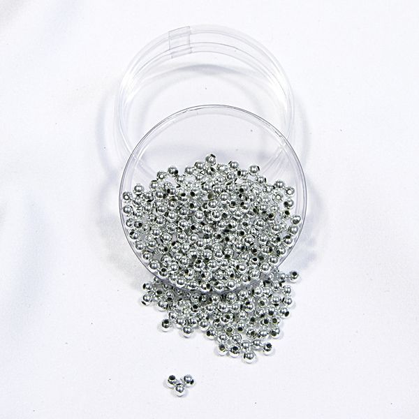 Ezüst színű, 4mm- es műanyag gyöngy. Hagyományos tűvel varrható. ( 10 gr, körül-belül 432 db-ot tartalmaz)