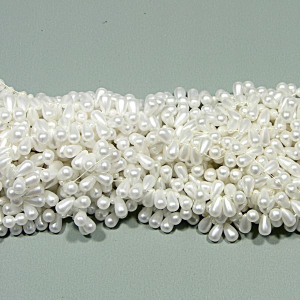 Fehér színű, 5x10mm- es, csepp alakú, műanyag tekla gyöngy. Hagyományos tűvel varrható. A lyuk a keskeny végén található. ( 10 gr, körül-belül 53db-ot tartalmaz)