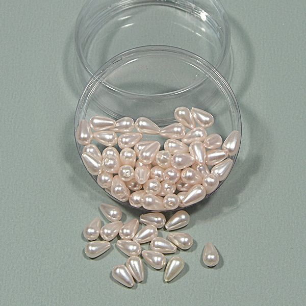 Púder színű, 5x11mm- es, csepp alakú, műanyag tekla gyöngy. Hagyományos tűvel varrható. A lyuk hosszanti irányú. ( 10 gr, körül-belül 67db-ot tartalmaz)