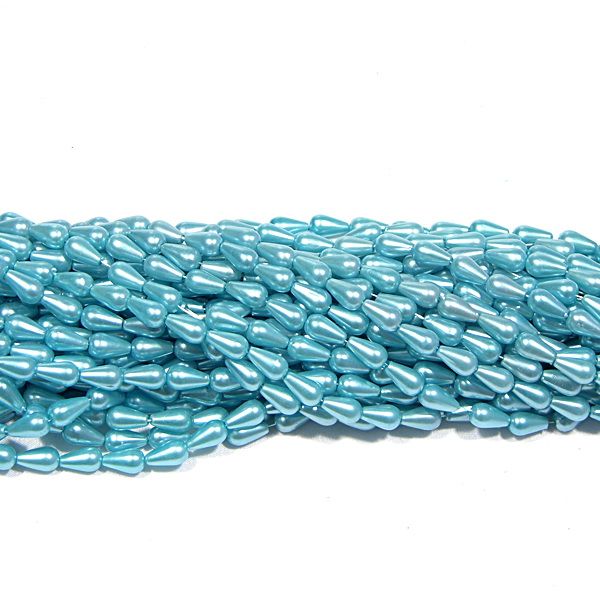 Zöldes-kék színű, 5x11mm- es, csepp alakú, műanyag tekla gyöngy. Hagyományos tűvel varrható. A lyuk hosszanti irányú. ( 10 gr, körül-belül 67db-ot tartalmaz)