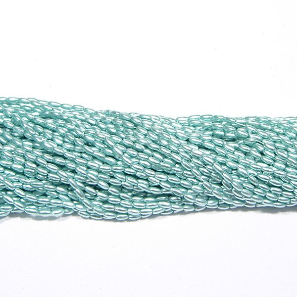 Kékes-zöld színű, 3x6mm- es, rizsszem alakú, műanyag tekla gyöngy. Hagyományos tűvel varrható. ( 10 gr, körül-belül 436 db-ot tartalmaz)