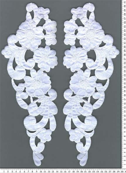 Düsessz alapra hímzett fehér páros csipke.