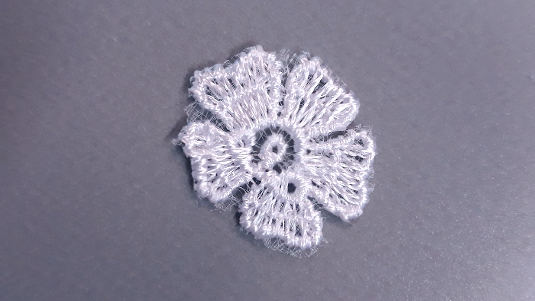 Fehér színű organza alapú csipke virág.