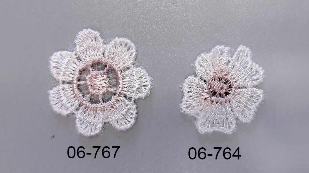 Krém színű légcsipke virág, közepén pezsgő színű hímzéssel.