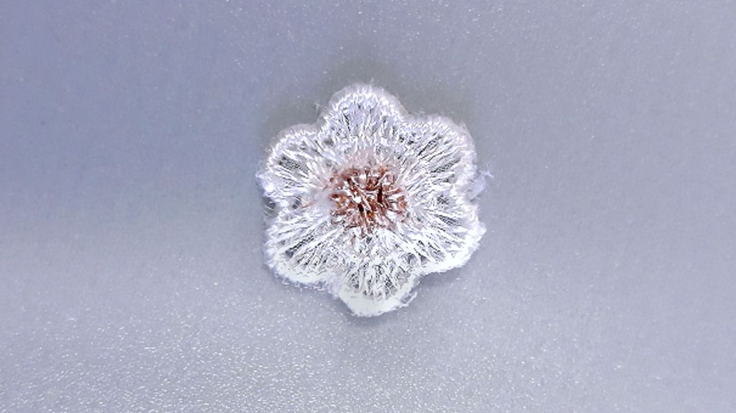 Krém színű légcsipke virág, közepén arany színű hímzéssel.