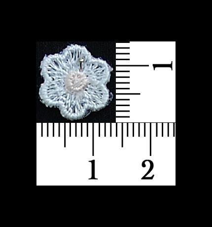 Fehér színű légcsipke virág, közepén rózsaszín színű hímzéssel.