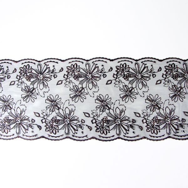 06-m-2 Fekete tüll alapú hímzett szegő csipke 18cm