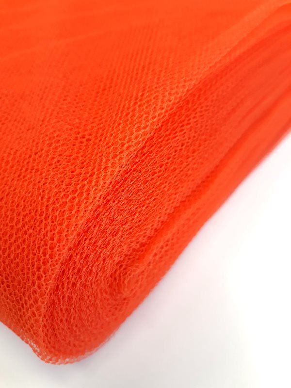 Hibiszkusz színű dekorációs tüll. Közepes keménységű. 130 cm széles