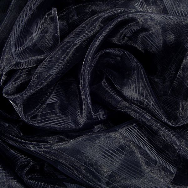 Fekete színű, hosszában fekete csíkos 150 cm széles opál organza.