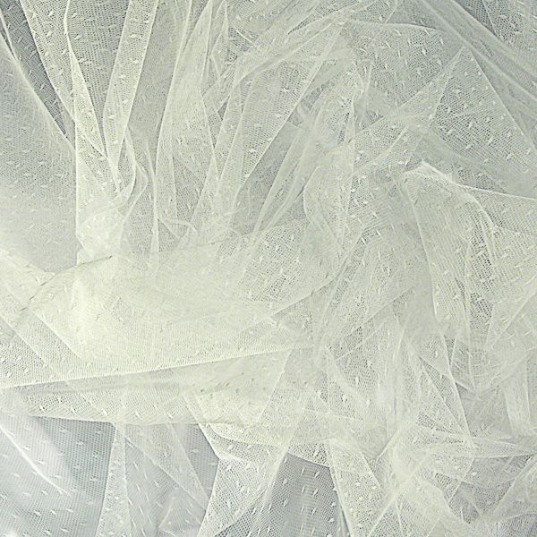 Krém színű, 150 cm széles, anyagában pöttyös, jó tartású, közép tüll anyag.