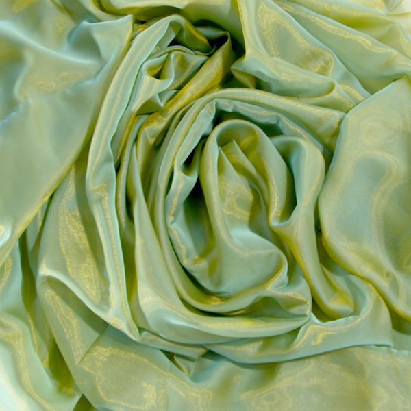 Türkiz kék és arany színű, 150 cm széles, kéttónusú fényes organza. 1