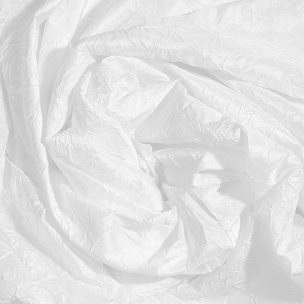 Fehér színű, 150 cm széles, gyűrt taft anyag.