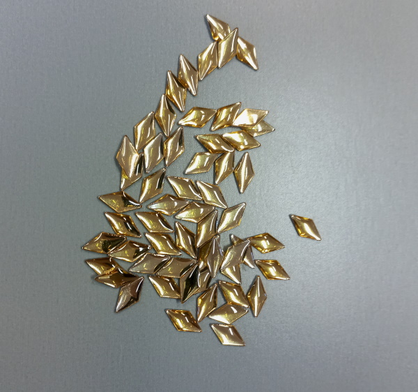 Arany színű felvasalható dísz.  Egy csomag 100 db-ot tartalmaz.