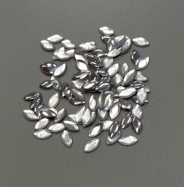 Ezüst színű felvasalható dísz.  Egy csomag 100 db-ot tartalmaz.