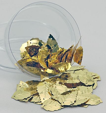 Arany színű, anyagában színezett levél. 12 mm széles, 15mm hosszú