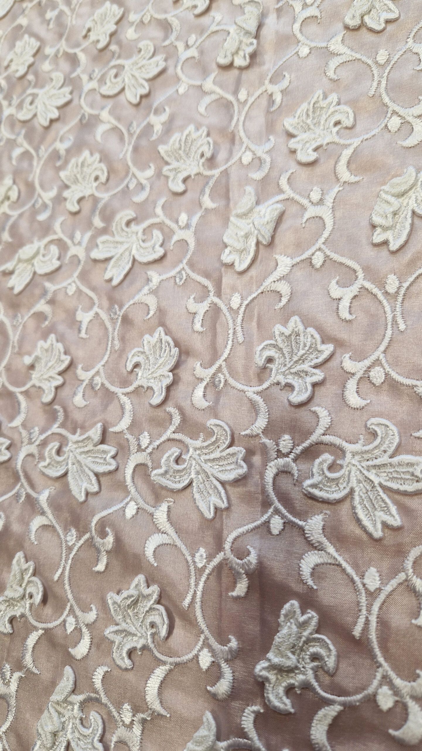 Az organza alap könnyedséget ad az anyagnak, miközben a sűrű hímzés megfelelő tartást és karaktert biztosít. Kiváló választás teljes ruha borítására, felsőrészhez vagy különleges részletek kiemelésére.