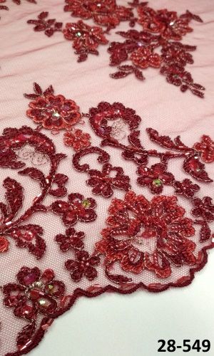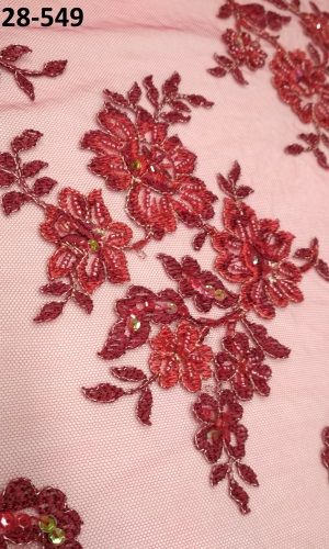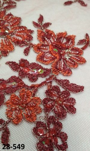 28-549 Meggypiros Tüll alapon, hímzett,gyöngyökkel ( csipke)