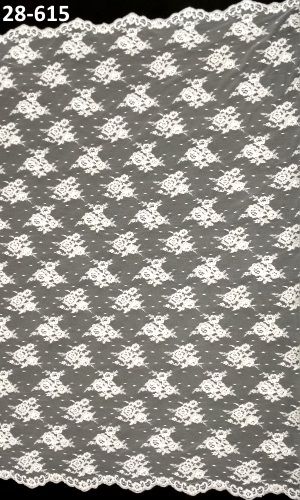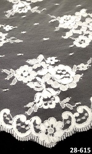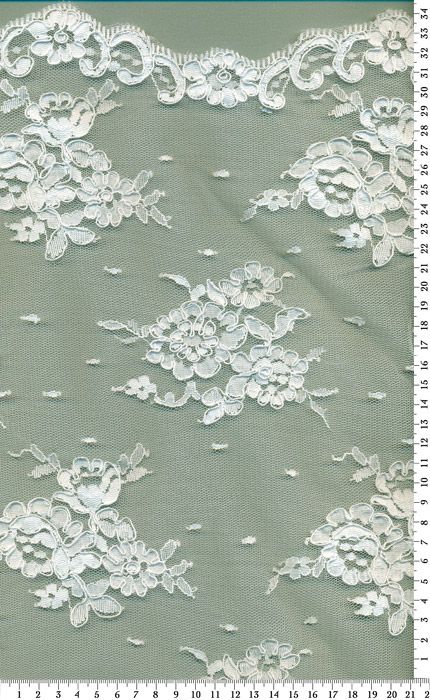 Ez a csipke törtfehér színben is elérhető (28-645 cikkszám), így könnyedén igazítható a ruha árnyalatához.