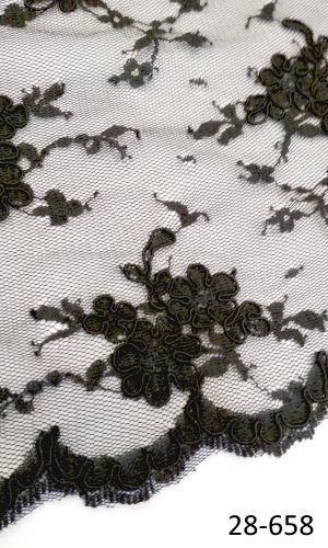 A mély fekete tónus elegáns alapot ad, így ez az anyag remek választás alkalmi és estélyi ruhákhoz, variálható betétekhez vagy kiegészítőkhez, ahol a cél egy időtálló, mégis egyedi megjelenés. A zsinórozott részletek finoman emelik ki a csipke mintáját anélkül, hogy túldíszítenék a textilt.