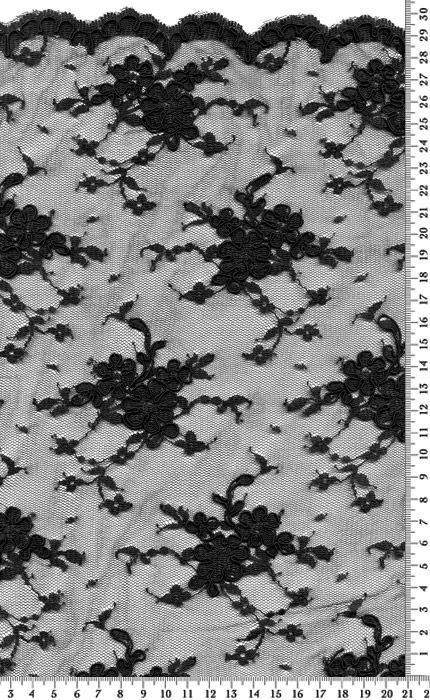 A fekete Rachel csipke anyag méterben kapható, így pontosan annyit rendelhetsz, amennyi az adott varrási projekthez szükséges.