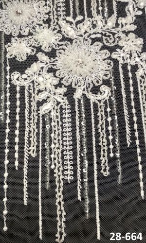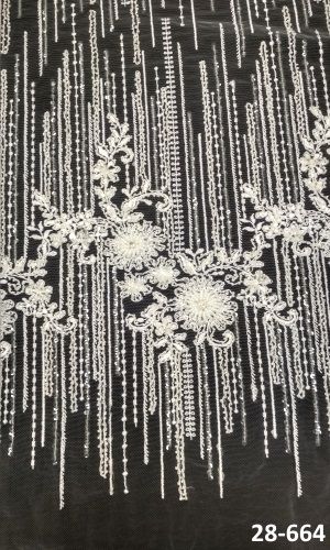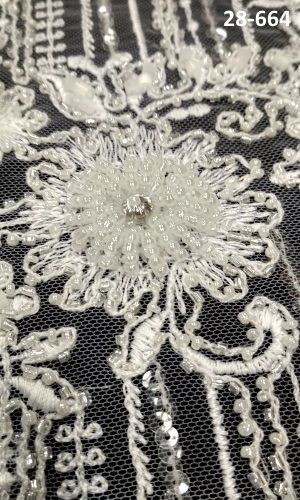 28-664 Fehér Tüll alapon, hímzett csipkeanyag gyöngyökkel