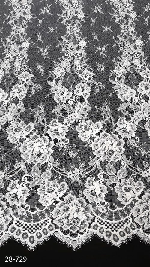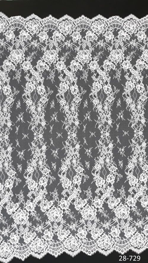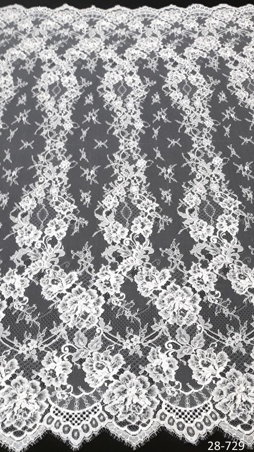 28-677 keleties hatású, 28 cm széles fehér rachel (francia) csipke