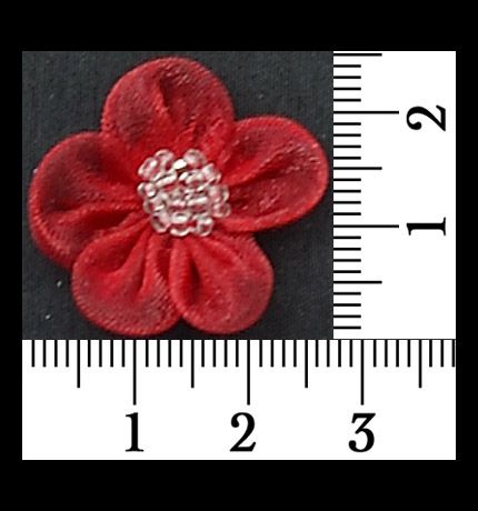 Bordó színű organza virág, közepén gyöngyökkel.