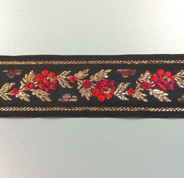 Fekete, arany és piros színű szalag, egy színoldalú.