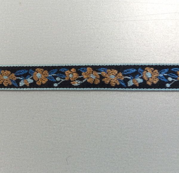 Fekete, kék és arany mintás szalag, egy színoldalú.
