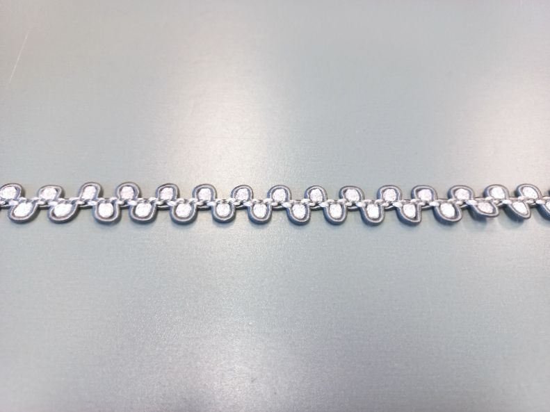 Szürke színű ruhadíszítő szalag, egy színoldalú.