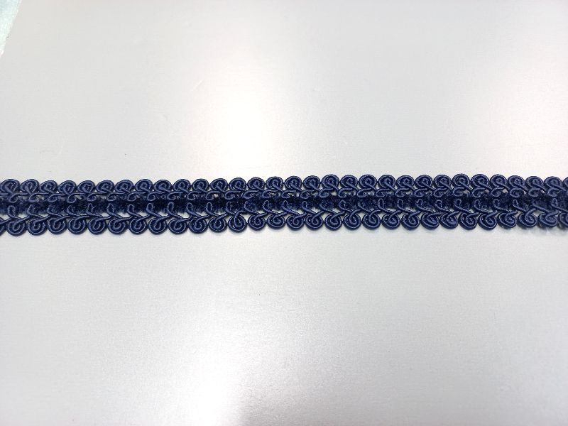 Sötétkék színű ruhadíszítő szalag, egy színoldalú.
