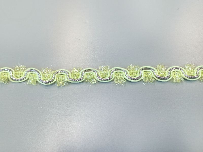 Világoszöld színű és ezüst díszítő szalag, egy színoldalú.