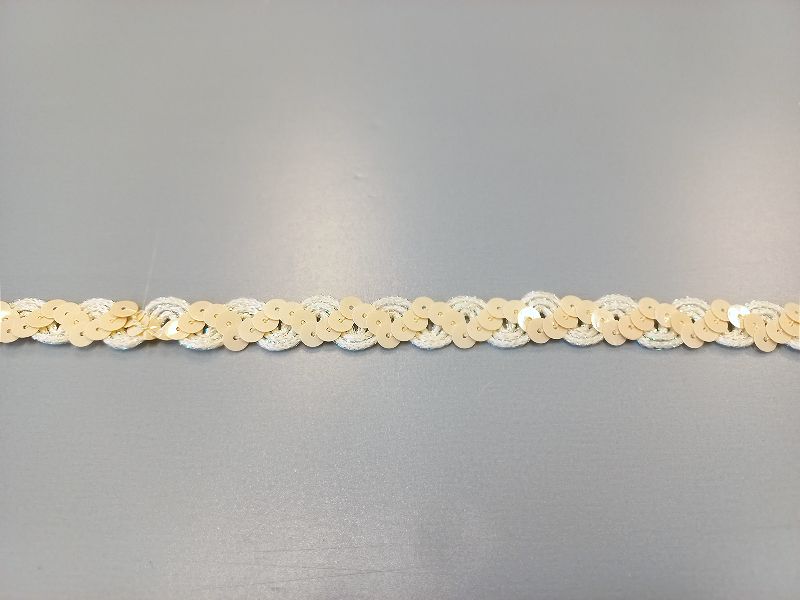 Pasztell citromsárga színű ruhadíszítő flitteres szalag, egy színoldalú.