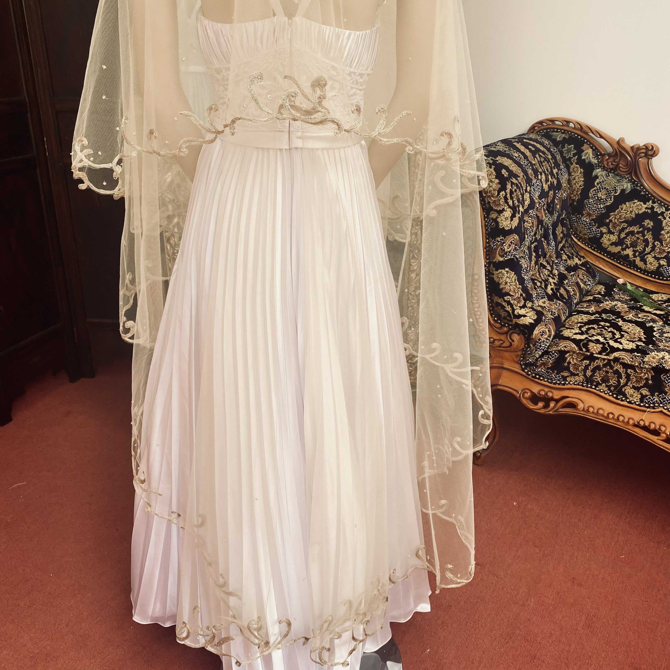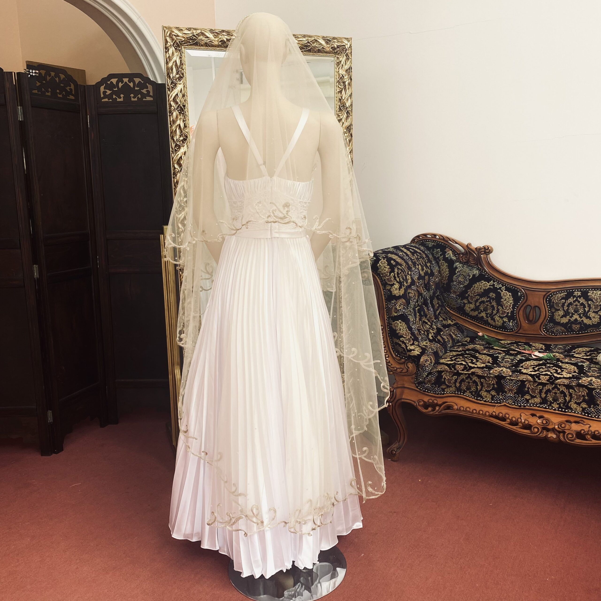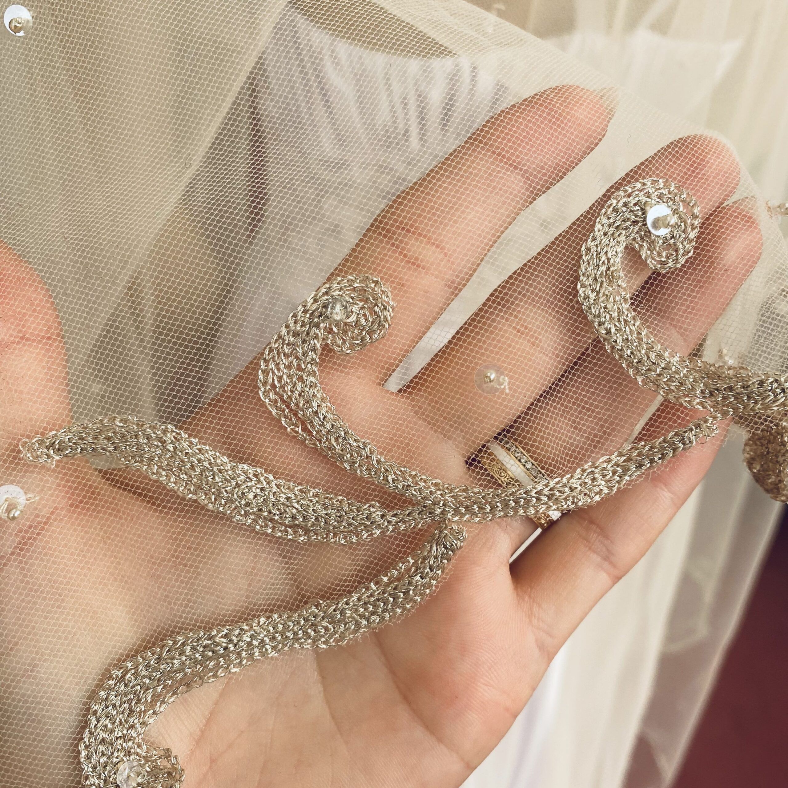 Matt tüllön finom hímzéssel, gyöngy és flitter díszítéssel.