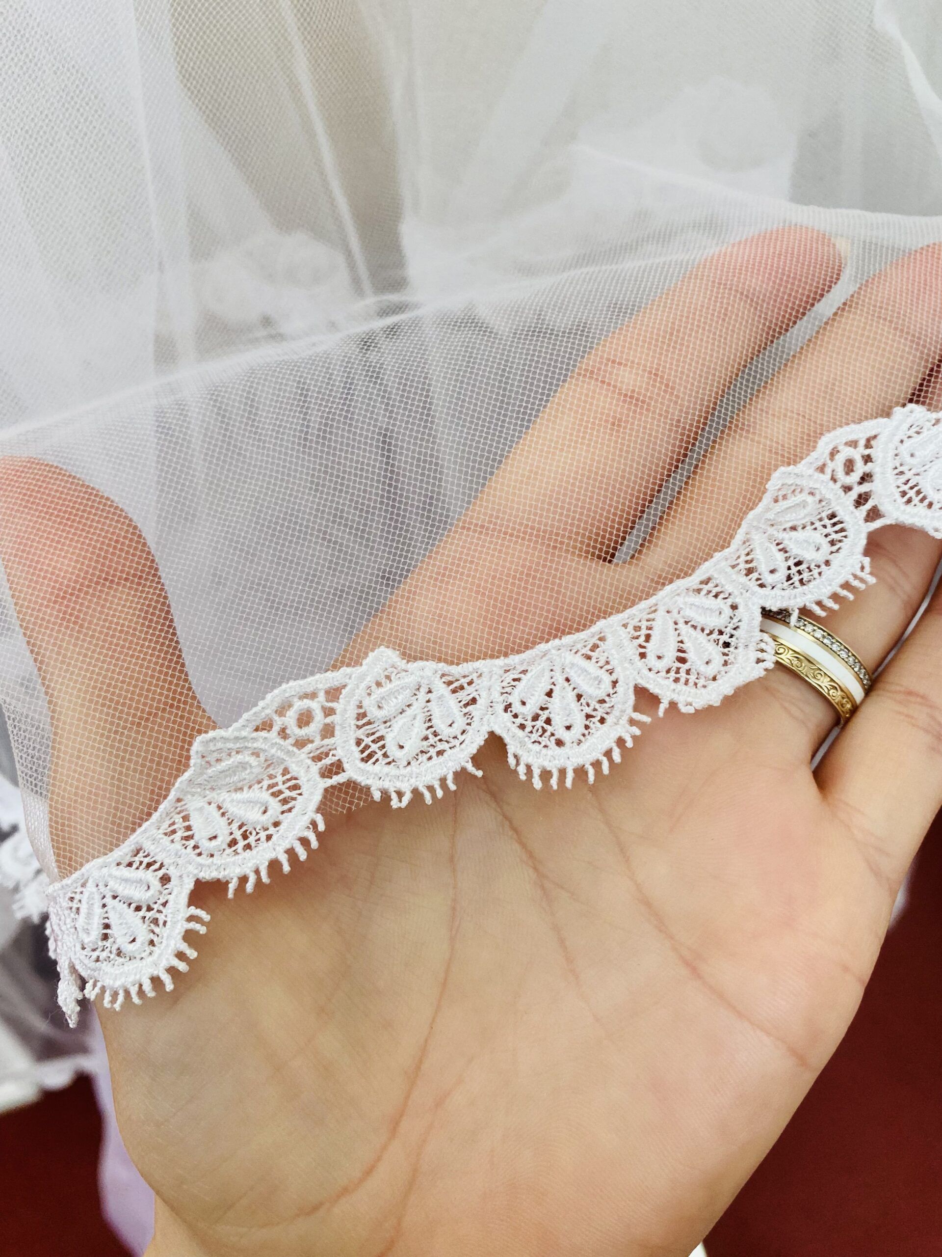 Fehér színű rövid fátyol.