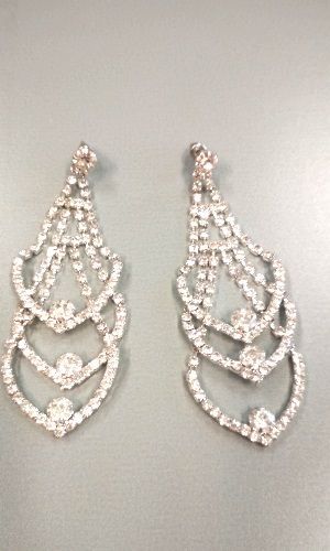 Ezüst színű fülbevaló strasszkövekkel díszítve.